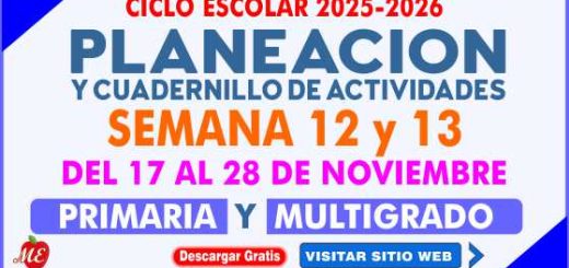 Planeación y cuadernillo de actividades Ciclo Escolar 2025-2026 – 1° al 6°Primaria y Multigrado SEMANA 12 y 13 DEL 17 AL 28 DE NOVIEMBRE 2025 La planificación...