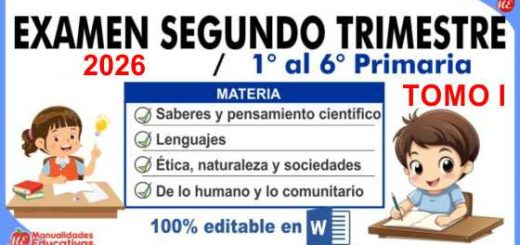 EXAMEN SEGUNDO TRIMESTRE 1° AL 6° PRIMARIA CICLO ESCOLAR 2026 – TOMO I Contestados con Respuesta 2026. Archivos en word y pdf. Espero que estén bien y...