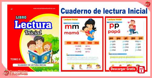 Cuaderno Silabario lectura Inicial Actualizado Tomo II. Documento compreto en PDF. 99 Páginas. La lectura inicial ofrece un material que permite poco a poco avanzar en la lectura. Se trata de una propuesta en la que se respeta el proceso individual de cada niño; es así que siempre encontramos en un mismo grupo de niños y niñas con diferentes niveles de aprendizaje.