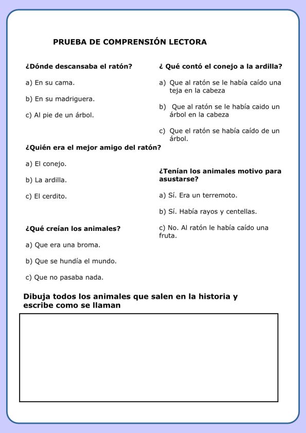 Actividades de comprension lectora para niños. Lecturas de comprension lectora con preguntas. Fichas de comprension lectora, Cuadernillo de comprension lectora.
