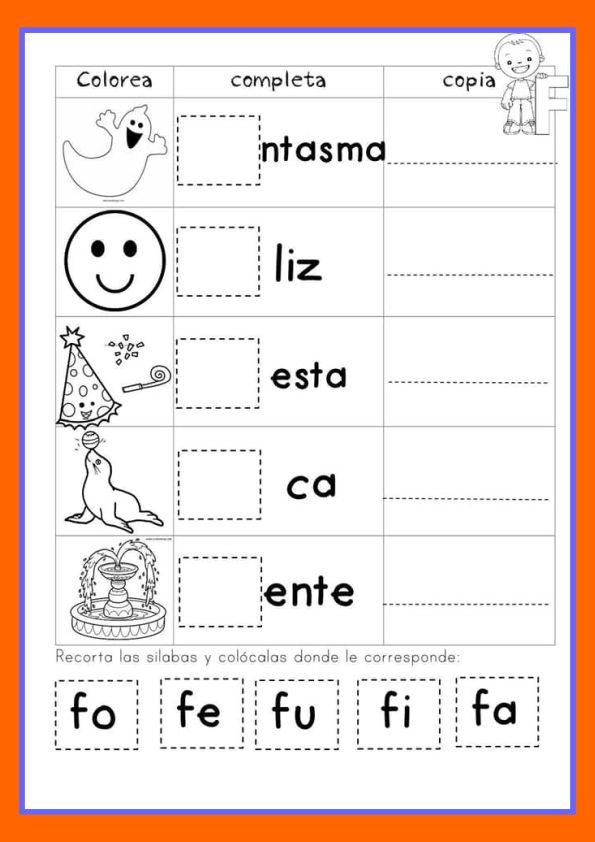 • Completa las palabras con la sílaba correcta fra, fre, fri, fro, fru