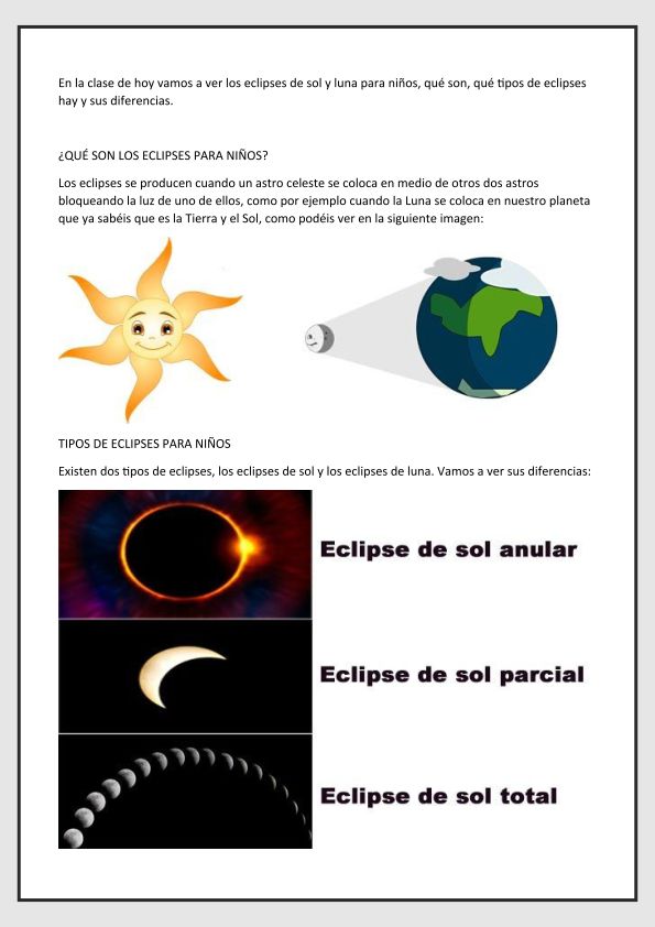 ACTIVIDADES ECLIPSE SOLAR PARA PREESCOLAR Y PRIMARIA