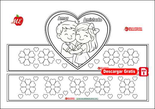Plantilla de corona Día del Amor y la Amistad para imprimir, colorear, recortar y arma (a disfrutar)