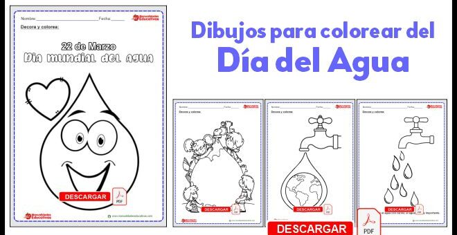 Dibujos para colorear del día del agua. Documentos en PDF.