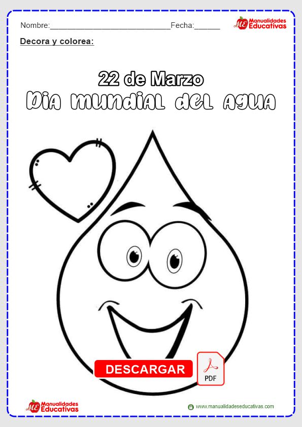 El Día Mundial del Agua se celebra cada año el 22 de marzo para concienciar sobre la importancia del agua y la necesidad de su gestión sostenible. En esta fecha, se busca promover acciones que ayuden a preservar este recurso vital y desarrollar actividades con los niños será importante con las actividades que compartimos dibujos para colorear del día del agua.