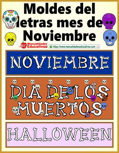 Incluye: letras en diferentes tamaños, calaveras para colorear, recortar y decorar tus letras y/o letreros