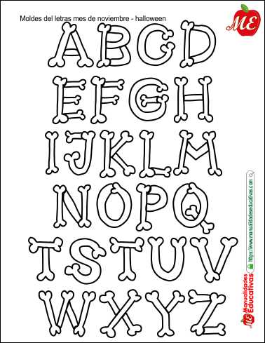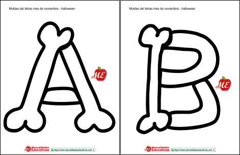 Moldes de Letras para imprimir. Estos Moldes de Letras son ideales para imprimir, hacer diferentes manualidades, realizar actividades con los niños o para decorar el salón de clases. Incluye las letras de la A – Z en mayúscula y dibujos de calaveras.