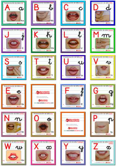 Pronunciación de las letras del abecedario. Una por cada letra del abecedario.