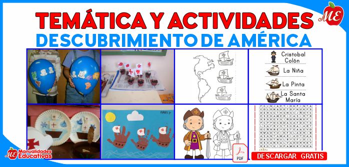 Temática y actividades de Descubrimiento de América Material completo en PDF.