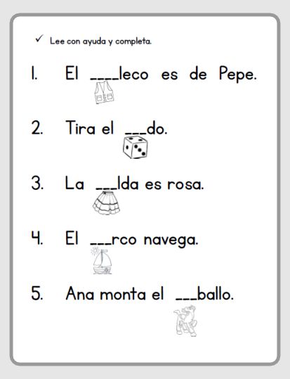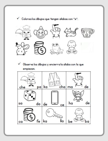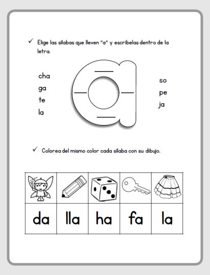 • Después de trabajar cada planilla, se pueden comenzar a formar palabras de forma oral con las sílabas contenidas en la misma.