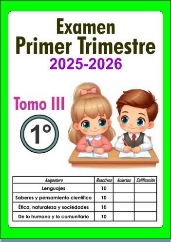 Examen Primer Trimestre 1° Primaria Tomo III