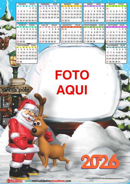 Calendario 2026 Editable en PPT. Calendarios motivos navideños editables en ppt. Donde podrás agregar la foto de tus niños(as), alumnos, familias, etc. con diseños creativos que les encantara nuestros trabajos.