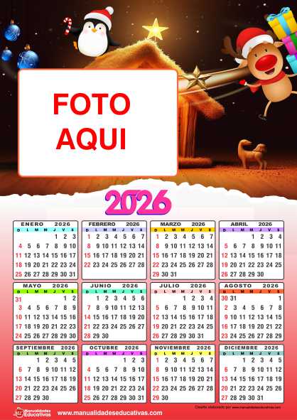 Descarga el archivo en power point para que puedas colocar, insertar las foto de tus alumnos y sus nombres. Calendario de 2026 para imprimir y llenarlo con fotos. Como cada año, hemos diseñado las plantillas de calendarios incluido los 12 meses del año, sencillas y bonitas con imágenes y dibujos de navidad. Solo tienes que bajar y/o descargar el calendario en formato Power Point para editarlo agregando fotos.