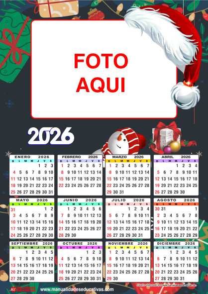 Descarga el archivo en power point para que puedas colocar, insertar las foto de tus alumnos y sus nombres. Calendario de 2026 para imprimir y llenarlo con fotos. Como cada año, hemos diseñado las plantillas de calendarios incluido los 12 meses del año, sencillas y bonitas con imágenes y dibujos de navidad. Solo tienes que bajar y/o descargar el calendario en formato Power Point para editarlo agregando fotos.