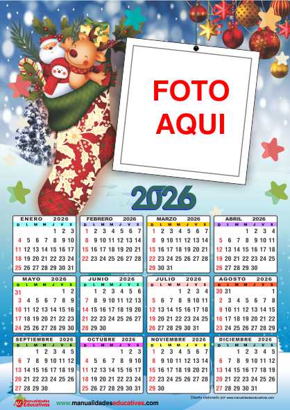 Calendario 2026 Editable en PPT. Calendarios motivos navideños editables en ppt. Donde podrás agregar la foto de tus niños(as), alumnos, familias, etc. con diseños creativos que les encantara nuestros trabajos.