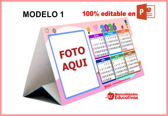 CALENDARIO DE ESCRITORIO TRIANGULAR MODELO 1 – Editable en PPT para agregar fotos, logos, etc.
