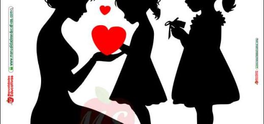 Silueta 8 NIÑA DANDO UN REGALO CON DETALLE DE CORAZON A SU MAMÁ (SILUETA Y PLANTILLA EN PDF, Descargar final del POST)A Silueta y plantilla para proyectos...
