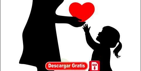 Silueta 4 NIÑA DANDO UN REGALO A SU MAMÁ DE FONDO CORAZON CON DETALLES (SILUETA Y PLANTILLA EN PDF, Descargar final del POST) Silueta y plantilla para...