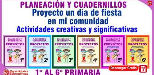 CUADERNILLOS Y PLENACIÓN: Proyecto un día de fiesta en mi comunidad PROYECTOS Y PLANEACION PARA 1° AL 6° PRIMARIA – Contiene todas las materias. Campo: De lo humano...