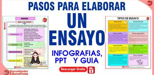 INFOGRAFIAS, PPT Y GUIA EN PDF. ¿QUE ES UN ENSAYO? Un ensayo es un texto escrito en el que el autor expresa sus ideas, opiniones o reflexiones...