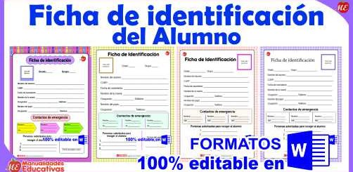 8 MODELOS DE FORMATOS PARA FICHA DE IDENTIFICACIÓN DEL ALUMNO. DOCUMENTO 100% EDITABLE EN WORD. Una Ficha de Identificación del Alumno es el documento clave de cualquier...