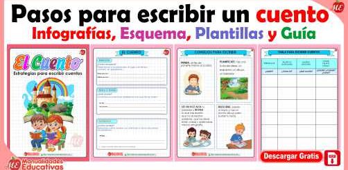 Pasos para escribir un cuento. Estrategias para escribir cuentos. Infografías, Esquema, Plantillas y Guía Un cuento para niños es, en esencia, una narración breve y sencilla diseñada...