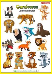 Carnívoros: Comen animales. Los animales carnívoros o zoófagos son aquellos organismos consumidores cuya dieta se compone exclusivamente de la materia orgánica de otros animales. Son organismos heterótrofos. En esta clasificación se consideran tanto a los animales depredadores, como a los carroñeros.