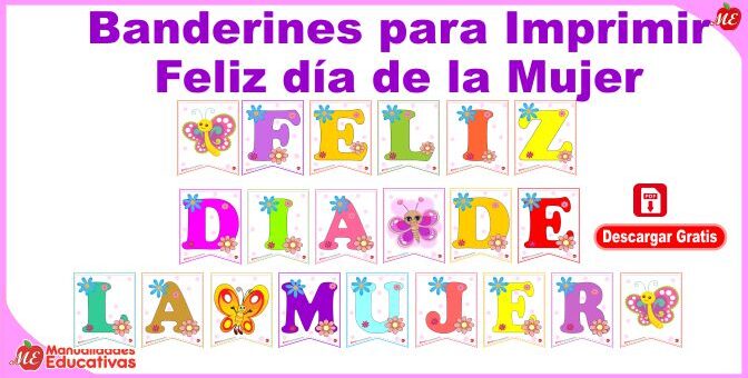 Bonitos banderines que puedes descargarlos de forma gratuita desde nuestra página web. Te invito a darle una decoración divertida por el motivo Día de la Mujer. Sorprende a las mamás con bonitos banderines decorativos. Elegí un rincón educativo cálido y de tu casa, decóralo con un gran homenaje al día de la mujer. Sin embargo, el mensaje no tiene por qué ser extenso ni detallado, sino que escribe desde tu corazón..