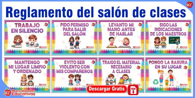 LÁMINAS DEL REGLAMENTO DEL SALÓN DE CLASES Y/O ACUERDOS DE CONVIVENCIA PARA DECORAR TU AULA ESCOLAR