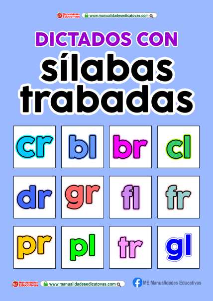 Los dictados de sílabas trabadas (aquellas donde se encuentran dos consonantes seguidas de una vocal, como bla, tre, pri) son fundamentales para consolidar la lectoescritura en primaria.