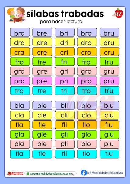 - 1 FICHA DE SILABAS TRABADAS A COLORES PARA HACER LECTURA