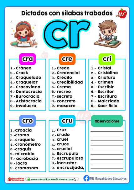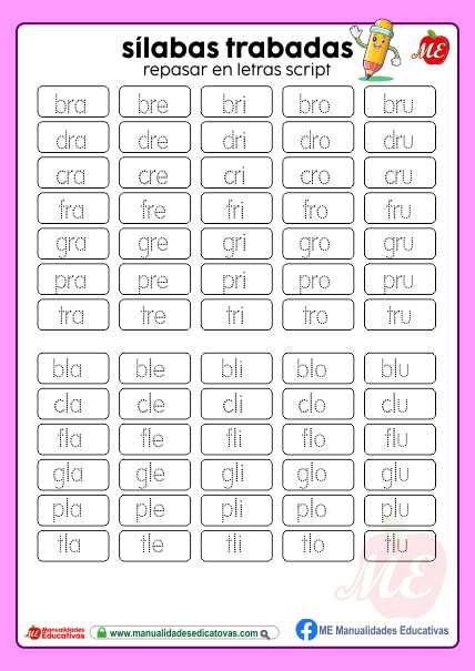 Marcado: Pídeles que encierren en un círculo la sílaba trabada con un color vibrante después de escribirla para mejorar la memoria visual.