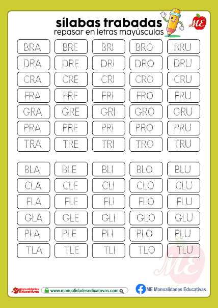 - 3 FICHAS PARA REPASAR EN MAYUSCULAS Y MINÚSCULAS LAS SILABAS TRABADAS