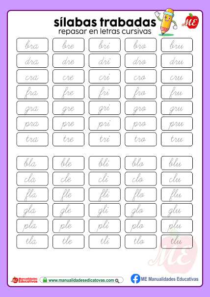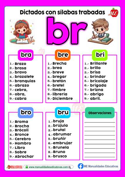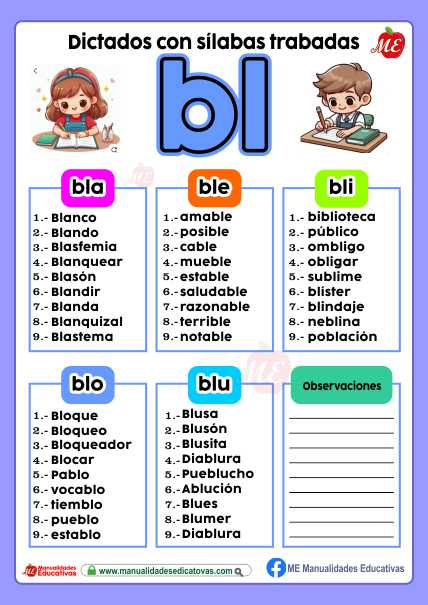 Marcado: Pídeles que encierren en un círculo la sílaba trabada con un color vibrante después de escribirla para mejorar la memoria visual.