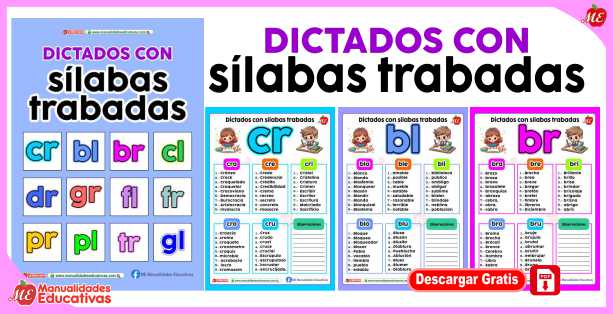 Los dictados de sílabas trabadas (aquellas donde se encuentran dos consonantes seguidas de una vocal, como bla, tre, pri) son fundamentales para consolidar la lectoescritura en primaria.