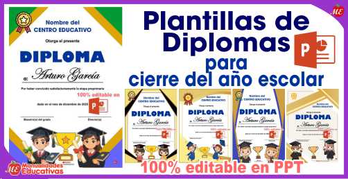 10 Plantillas de Diplomas para cierre del año escolar. Documento editable en PPT.