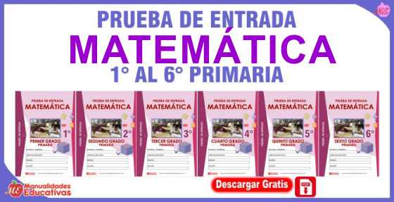 Prueba de Entrada de Matemáticas 1°, 2°, 3°, 4°, 5°, 6° Primaria