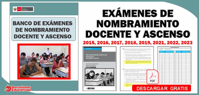 Estimados docentes hoy les compartimos todas las examenes con respuesta/clave Exámenes de nombramiento docente y ascenso. Cuadernos con clave tomados por el Minedu de los exámenes de nombramiento docente de los año 2015, 2016, 2017, 2018, 2019, 2021, 2022, 2023. Esperesmos sea de gran aporte.