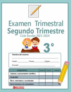 Examen Trimestral Segundo Trimestre Ciclo Escolar 2023-2024. Se define como examen a la prueba que se realiza para comprobar los conocimientos adquiridos en una determinada materia, dicha prueba la toma el docente a cargo.la evaluacion en ocasiones es importante ya que se tiene la necesidad de saber cuanto han aprendido los alumnos.cabe destacar que el examen se puede realizar de varias formas como por ejemplo: oral, escrita, electronico o en un entorno de pruebas fisicas en un periodo de tiempo definido bajo la supervision del maestro.los examenes pueden estar estructurados con preguntas abiertas, cerradas o de opcion multiple, las cuales exigiran el desarrollo academico por parte del estudiante.compañeros maestros a continuación les compartimos los siguientes examenes del segundo trimestre del ciclo escolar 2023-2024 en educación primaria.las preguntas que contiene el examen estan dirigidas a evaluar al alumno para saber su nivel de aprendizaje.