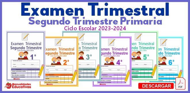 Examen Trimestral Segundo Trimestre Ciclo Escolar 2023-2024. Se define como examen a la prueba que se realiza para comprobar los conocimientos adquiridos en una determinada materia, dicha prueba la toma el docente a cargo.la evaluacion en ocasiones es importante ya que se tiene la necesidad de saber cuanto han aprendido los alumnos.cabe destacar que el examen se puede realizar de varias formas como por ejemplo: oral, escrita, electronico o en un entorno de pruebas fisicas en un periodo de tiempo definido bajo la supervision del maestro.los examenes pueden estar estructurados con preguntas abiertas, cerradas o de opcion multiple, las cuales exigiran el desarrollo academico por parte del estudiante.compañeros maestros a continuación les compartimos los siguientes examenes del segundo trimestre del ciclo escolar 2023-2024 en educación primaria.las preguntas que contiene el examen estan dirigidas a evaluar al alumno para saber su nivel de aprendizaje.