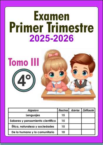Examen Primer Trimestre 4° Primaria 2025-2026 – TOMO III