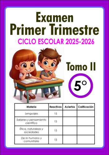 Examen Primer Trimestre 5° Primaria Tomo II