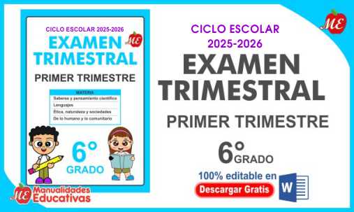 EXAMEN SEGUNDO TRIMESTRE 6° GRADO PRIMARIA 2025-2026. ARCHIVOS EN FORMATO WORD Y PDF