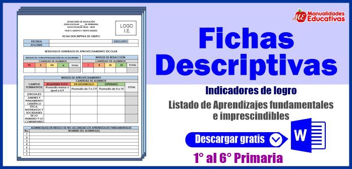 Fichas descriptivas 1° al 6° Primaria. ARCHIVOS EDITABLES EN WORD