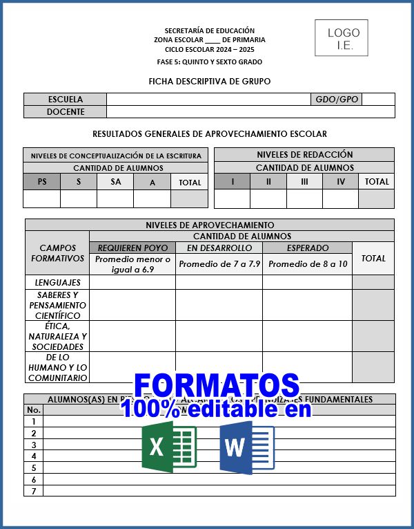 Fichas descriptivas 1° al 6° Primaria. ARCHIVOS EDITABLES EN WORD
