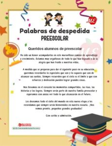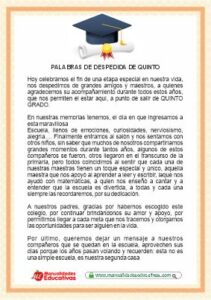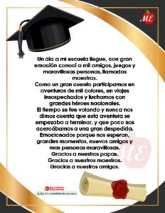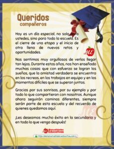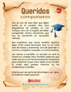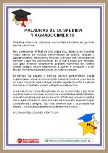 Hoy les compartimos 20 TARJETAS de palabras de despedida y poemas. Los formatos están editables y/o modificable para agregar y quitar información para preparar las palabras de despedida del fin de curso. Dar un discurso también es una oportunidad para agradecer públicamente a las familias, las maestras, personal co mo el director y los demas maestros.