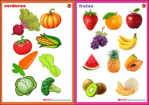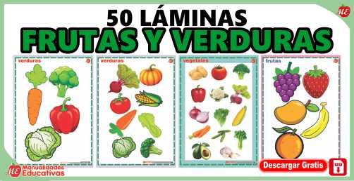 MÁS DE 50 LÁMINAS DE FRUTAS Y VERDURAS, HERRAMIENTAS EDUCATIVAS PARA INICIAL Y PRIMARIA