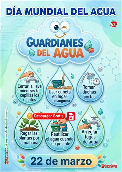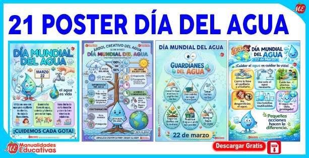 CONTIENE 21 POSTER CON DISEÑO CREATIVO A COLORES. EXCELENTES LAMINAS PARA DECORAR TU AULA ESCOLAR POR MOTIVO DIA DEL AGUA.