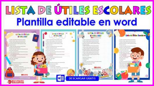 Formatos Lista de Útiles Escolares. Documentos Editables en Word.