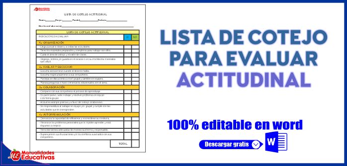 LISTA DE COTEJO ACTITUDINAL. DOCUMENTO EDITABLE EN WORD. Descargar final del POST.